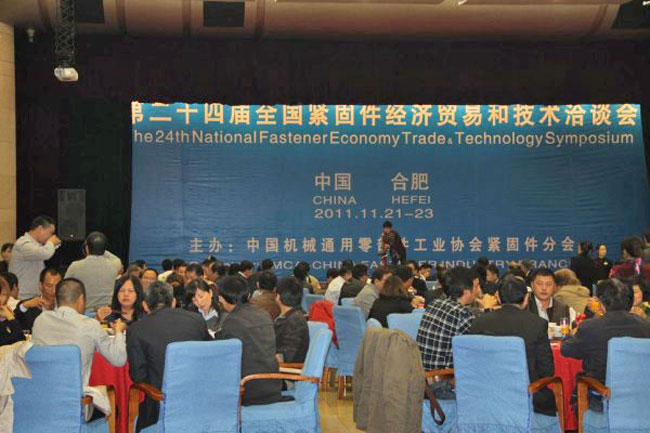 2011年11月21-23日,由中國(guó)機(jī)械通用零部件工業(yè)協(xié)會(huì)緊固件分會(huì)主辦的第二十四屆全國(guó)緊固件經(jīng)濟(jì)貿(mào)易和技術(shù)洽談會(huì)在安徽合肥隆重舉辦!稻香樓賓館外高高掛起的大紅燈籠寓意祝福會(huì)議的順利舉辦。“洽談會(huì)”立足行業(yè),舉辦多年以來(lái)深得業(yè)內(nèi)外人士的擁護(hù)和歡迎。本屆洽談會(huì)會(huì)聚了五湖四海的行業(yè)朋友超過(guò)500人。