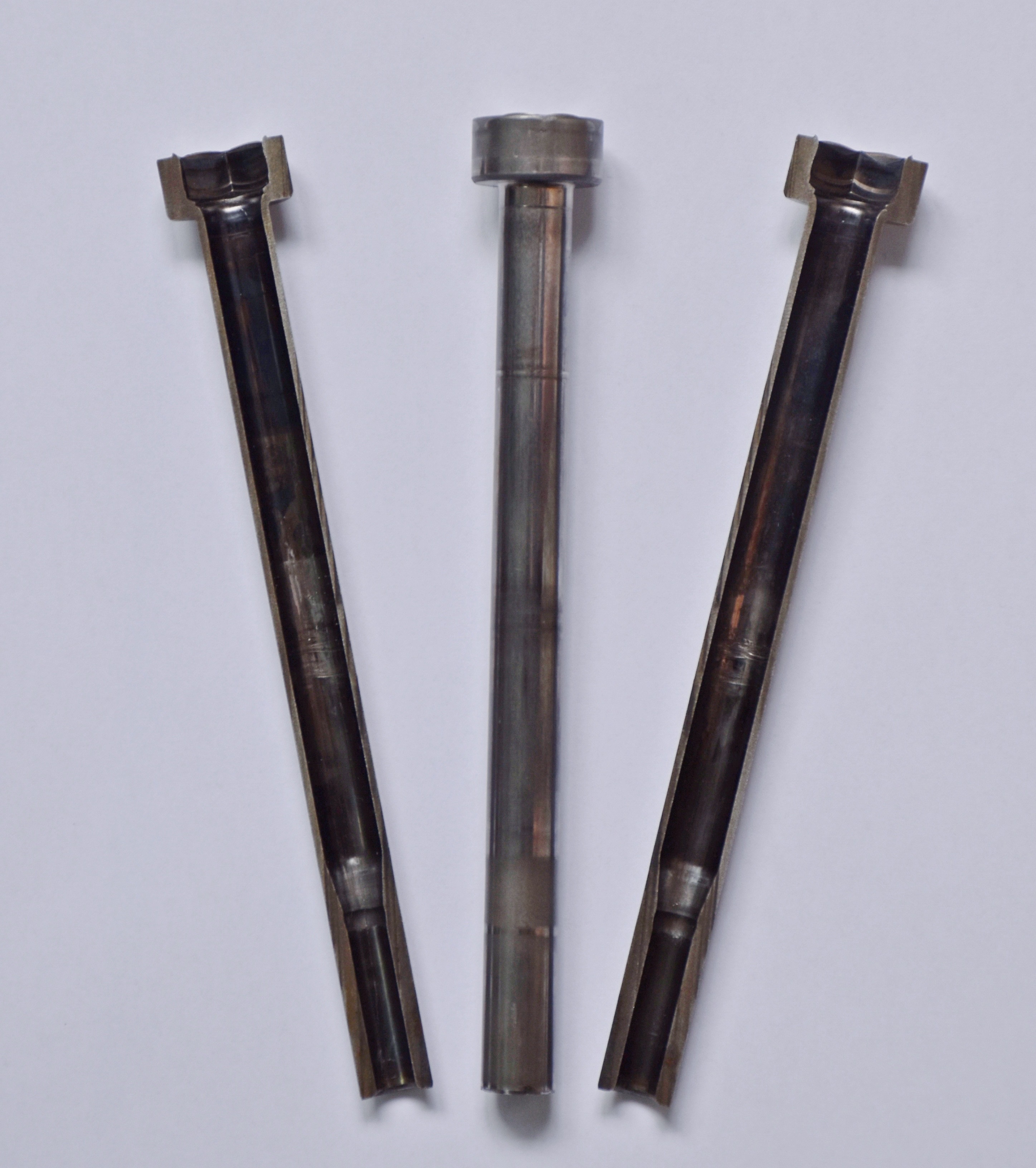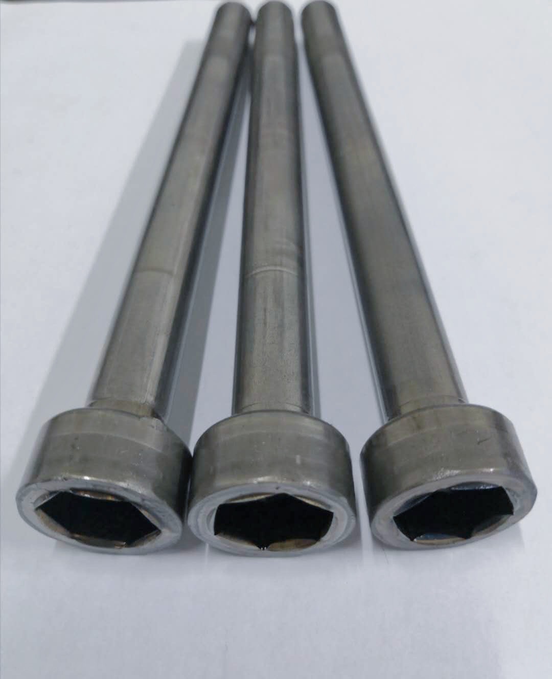 在塑性變形過程中難度最大的就是空心長零件,這也是在冷鐓行業(yè)中眾所周知的難點(diǎn)。在上世紀(jì)90年代,受限于冷鐓設(shè)備、線材及熱處理?xiàng)l件,長徑比(桿長與內(nèi)孔直徑的比值)只能達(dá)到3-5倍。然而隨著工業(yè)的不斷發(fā)展,目前已經(jīng)達(dá)到了8-11倍,這已是全體冷鐓人普遍認(rèn)為的一個(gè)瓶頸。而思進(jìn)智能為了突破這個(gè)瓶頸,在設(shè)備結(jié)構(gòu)以及模具設(shè)計(jì)上不斷進(jìn)行工藝改進(jìn),已成功試制出長徑比達(dá)16倍的空心長零件,將來還有望達(dá)到約20倍,相當(dāng)于目前大眾水平的整整一倍之多。