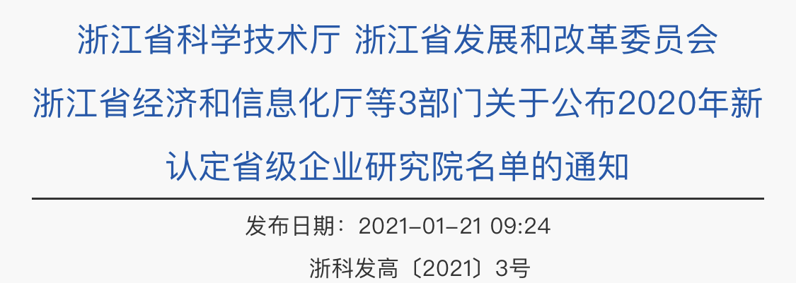 日前,浙江省科技廳、浙江省發(fā)展和改革委員會(huì)、浙江省經(jīng)濟(jì)和信息化廳三部門聯(lián)合下發(fā)《關(guān)于公布2020年新認(rèn)定省級(jí)企業(yè)研究院名單的通知》(浙科發(fā)高〔2021〕3號(hào)),“浙江省思進(jìn)智能冷鐓成形裝備研究院”被認(rèn)定為省級(jí)企業(yè)研究院。